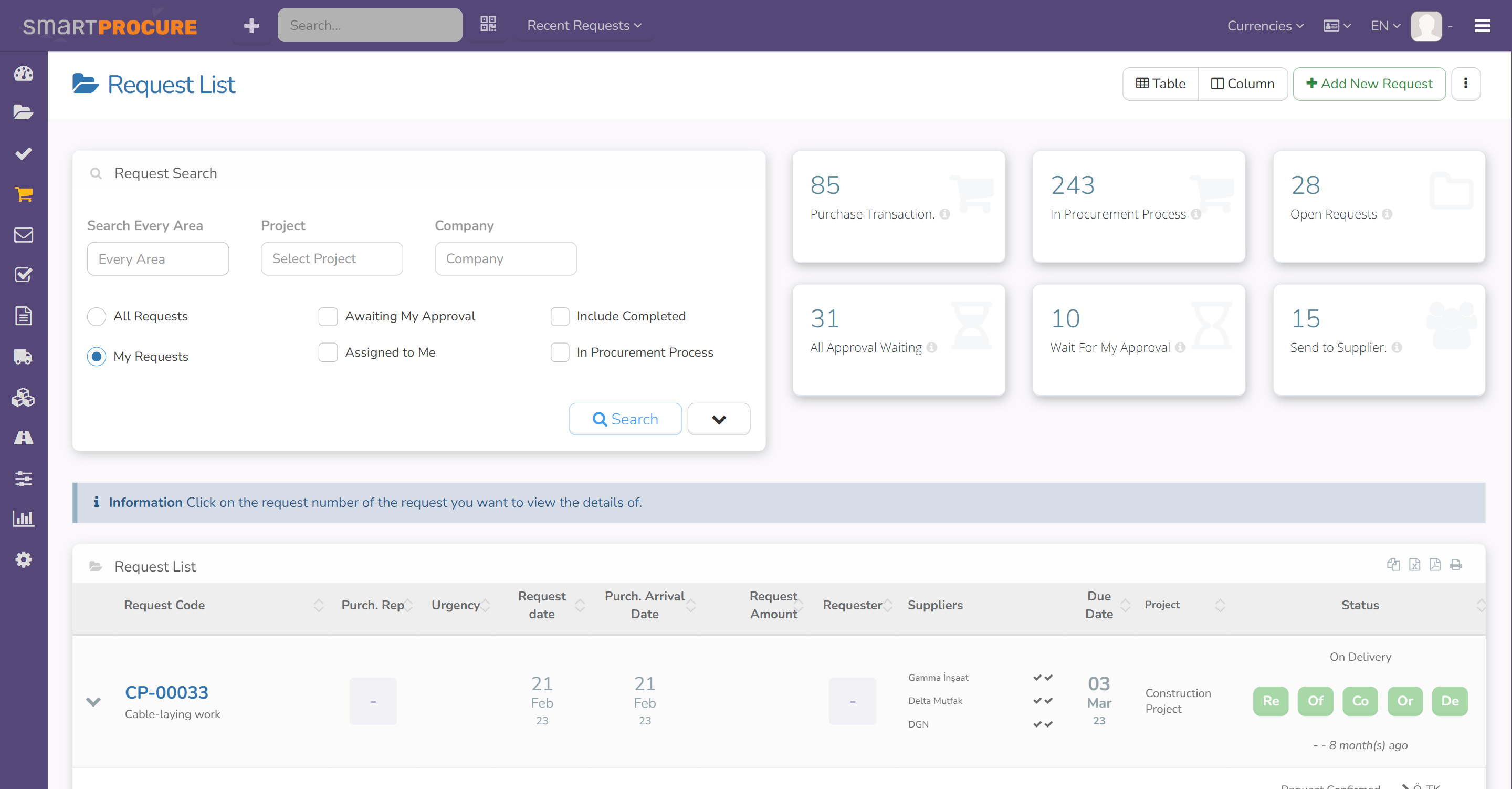 You don’t need to be in the office to progress the approval process. Confirmations are sent to your email instantly. Have the ability to access all your data related to a request with a single button, giving or rejecting it quickly; if you wish, you can also add notes and request revision. The SmartProcure will take your process to the speed of light by making requests for approval from any device from anywhere.
